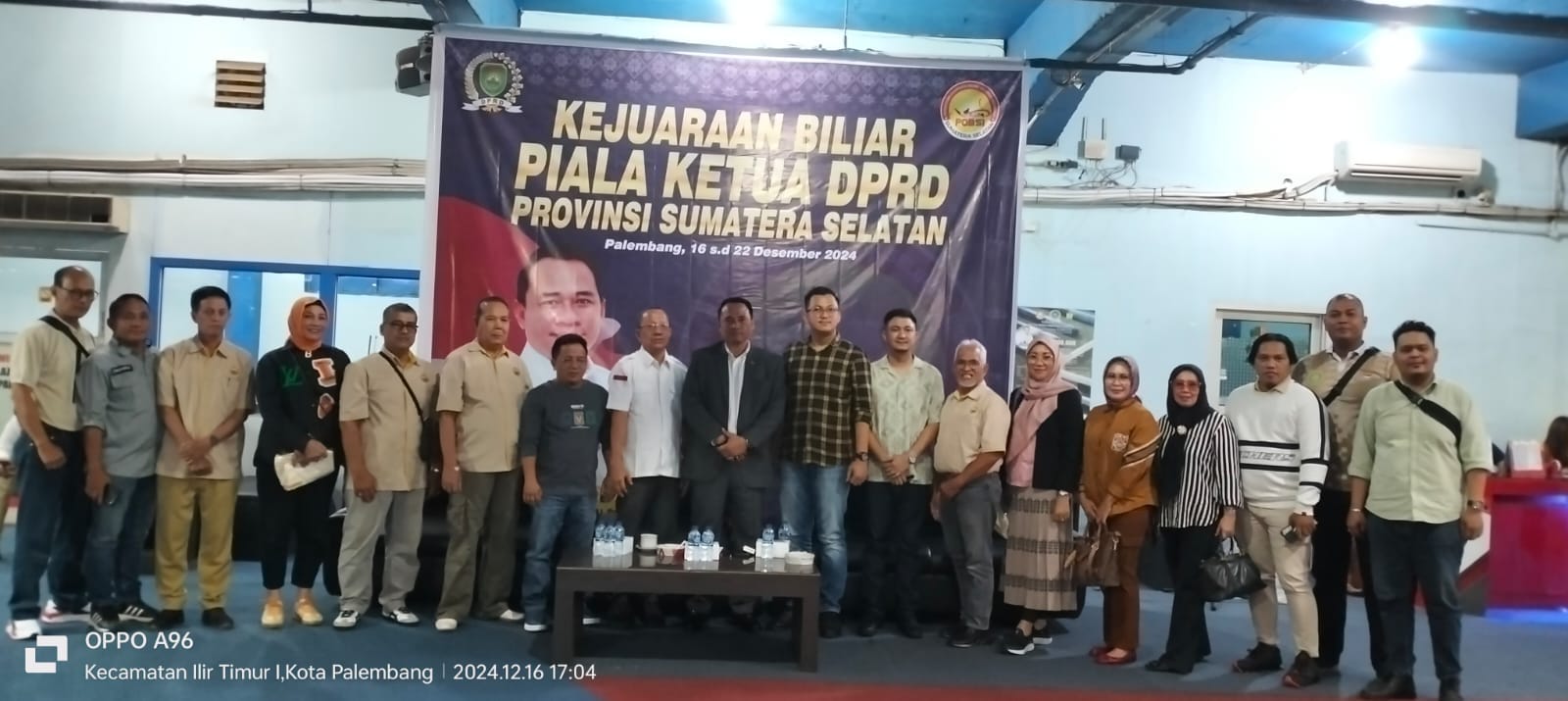 WAWBERITA, Palembang- pembukaan Kejuaraan Biliar Piala Ketua DPRD Provinsi Sumatera Selatan tahun 2024 dilaksanakan di Plaza Biliar Internasional Plaza (IP), Senin (16/12/2024). Pembukaan langsung dihadiri Ketua Umum Pengprov POBSI (Persatuan Olahraga Biliar Seluruh Indonesia) Sumatera Selatan Sekaligus Ketua DPRD Provinsi Sumsel, Andie Dinialdie SE MM beserta pengurus POBSI Sumsel.