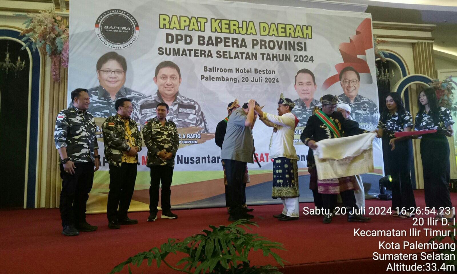 Airlangga Hartarto Selaku Ketua dewan dari DPP Bapera mengatakan, dia bangga dapat hadir dalam Rakerda Bapera Sumsel.