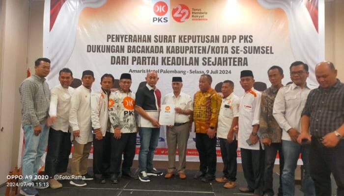 Hal tersebut langsung dikatakan oleh Ketua DPW PKS Sumsel Muhammad Toha usai menyerah Surat Keputusan DPP PKS terhadap dukungan bakal calon kepala daerah Kabupaten-Kota Se Sumsel, Selasa, (9/7/2024) di Hotel Amaris Palembang.