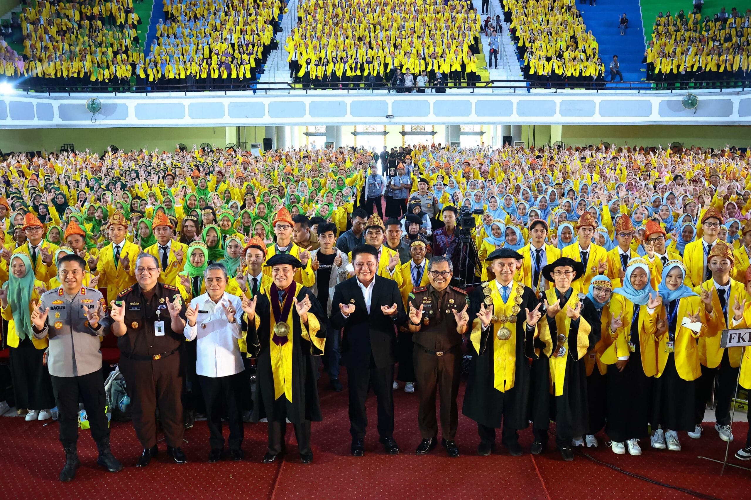 Dalam sambutannya, Herman Deru menegaskan tiga poin penting yang harus dimiliki mahasiswa sebagai bekal menuju masa depan: membangun pergaulan yang sehat, memanfaatkan bonus demografi, dan menguasai teknologi.