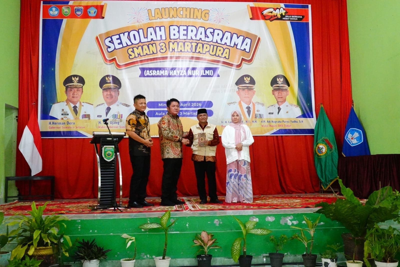 Updatekini.Com,Martapura — Gubernur Sumatera Selatan, Dr. H. Herman Deru, bersama Bupati Ogan Komering Ulu (OKU) Timur, Lanosin, secara resmi meluncurkan sekolah berasrama berbasis religi di SMA Negeri 3 Martapura, Kabupaten OKU Timur, Minggu (5/4/2026).