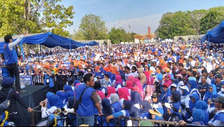 Terlihat Puluhan Ribu Relawan menghadiri Deklarasi calon Gubernur Sumsel Herman Deru dan Wakil Gubernur Sumsel Cik Ujang, Selasa ( 27/8/2024).