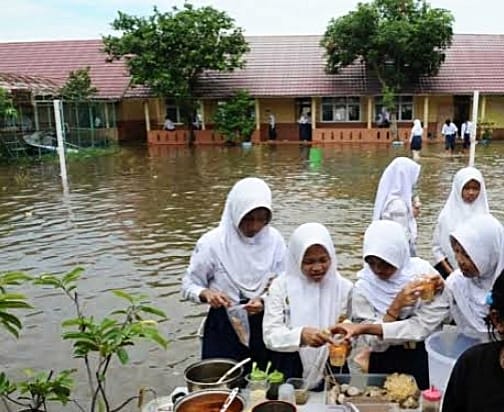 Palembang, UpdateKini – Hujan deras dan naiknya air pasang yang kerap terjadi di wilayah Sekolah Menengah Pertama (SMP) Negeri 25 Palembang, Jalan Puteri Dayang Rindu, Kecamatan Kertapati, tidak menjadi kendala bagi proses belajar mengajar. Namun, pihak sekolah tetap mengutamakan keselamatan siswa dengan memberikan kebijakan pembelajaran daring jika kondisi cuaca memburuk.