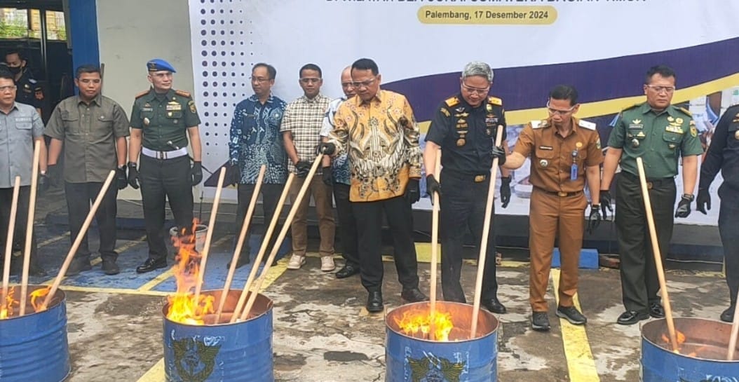 UpdateKini, Palembang, – Direktorat Jenderal Bea dan Cukai (DJBC) musnahkan barang hasil penindakan atas pelanggaran kepabeanan Bea Cukai yang dilaksanakan serentak di 4 wilayah Kantor Pengawasan dan Pelayanan Bea dan Cukai (KPPBC) Sumbagtim meliputi Pangkal Pinang, Jambi, Palembang, Tanjung Pandan, Selasa (17/12/2024).