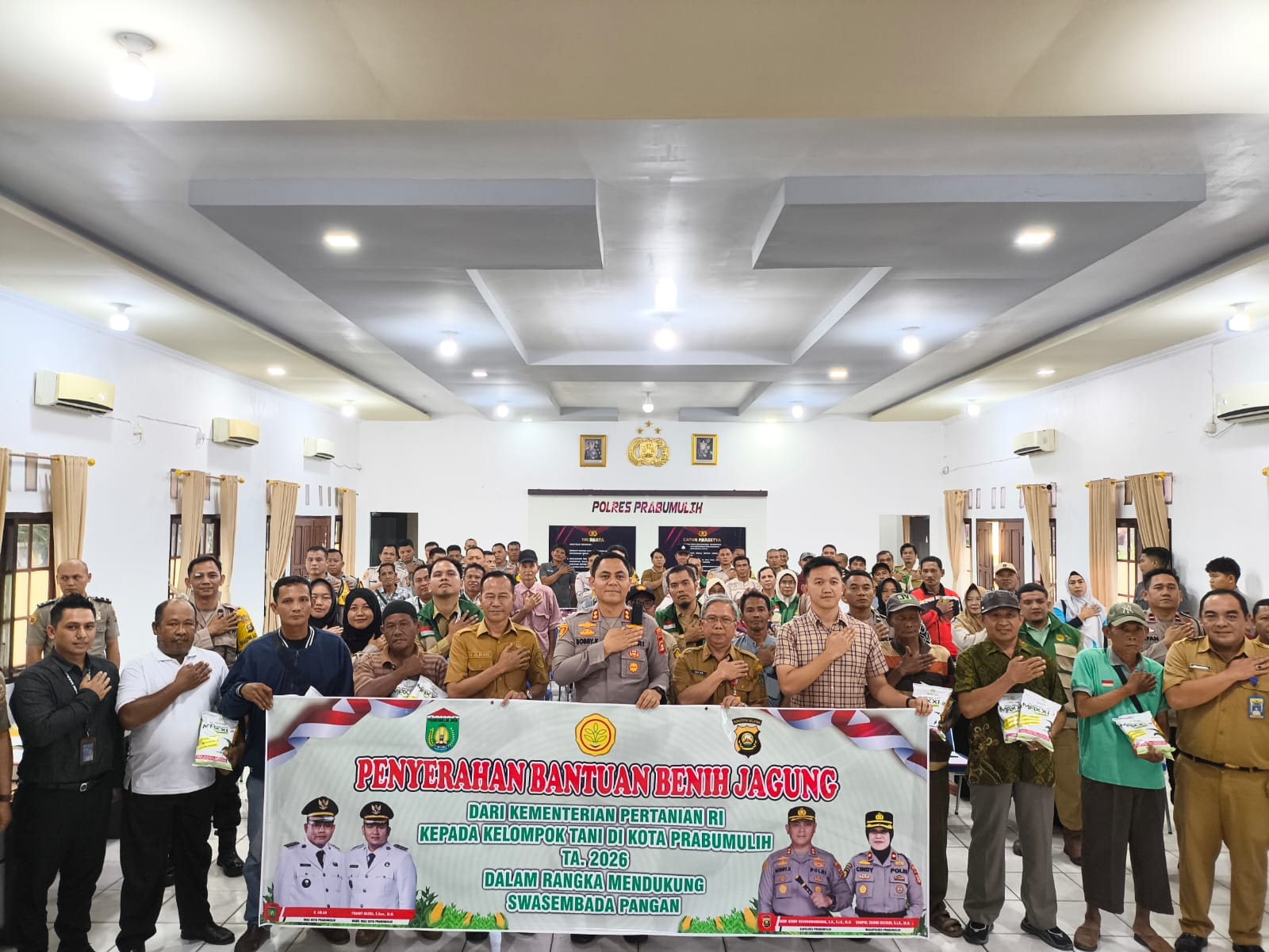 Prabumulih,UpdateKini – Upaya memperkuat ketahanan pangan terus digencarkan di Kota Prabumulih. Salah satunya melalui kegiatan penyerahan bantuan benih jagung Tahun Anggaran 2026 yang digelar di Aula Polres Prabumulih, Selasa (14/4/2026) sore. Kegiatan ini menjadi bukti nyata sinergi antara Polri dan pemerintah daerah dalam mendukung kesejahteraan petani.