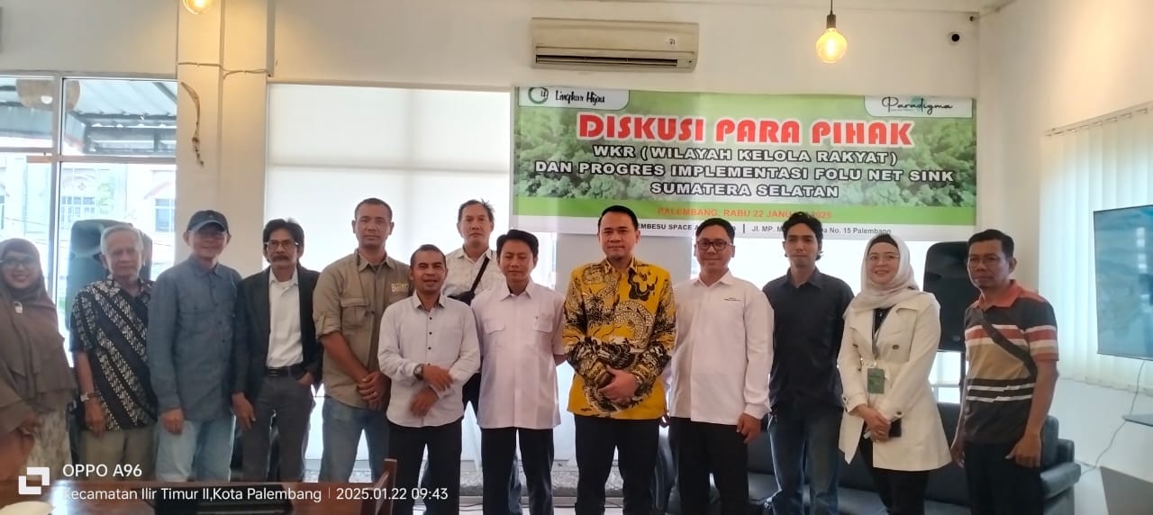 Sebagai bagian dari program ini, diskusi para pihak bertema “Wilayah Kelola Rakyat (WKR) dan Progres Implementasi Kebijakan FOLU Net Sink Sumsel” digelar di Tembesh Space and Resto, Jalan MP Mangkunegara, Bukit Sangkal, Kalidoni, pada Rabu (22/1).