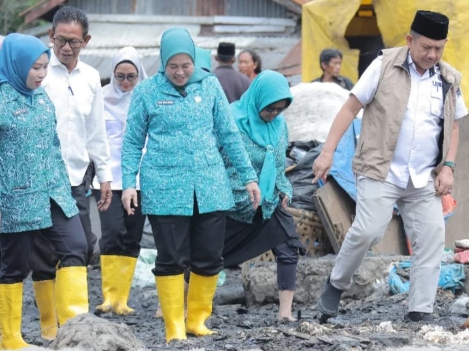Ketua TP PKK Palembang Bagikan Sembako ke Warga TPA Sukawinatan