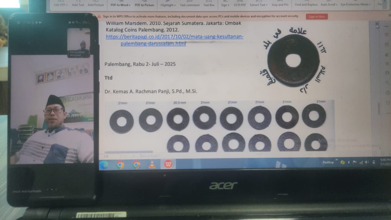 Dalam paparannya di forum kajian, Dr. Kemas menjelaskan bahwa studi ini tidak hanya berdasar pada benda fisik koin, tetapi juga dikolaborasikan dengan kajian naskah kuno dari Palembang, yang dihadirkan oleh Ustad. Kemas H. Andi Syarifuddin, seorang kolektor dan pemerhati manuskrip lokal.