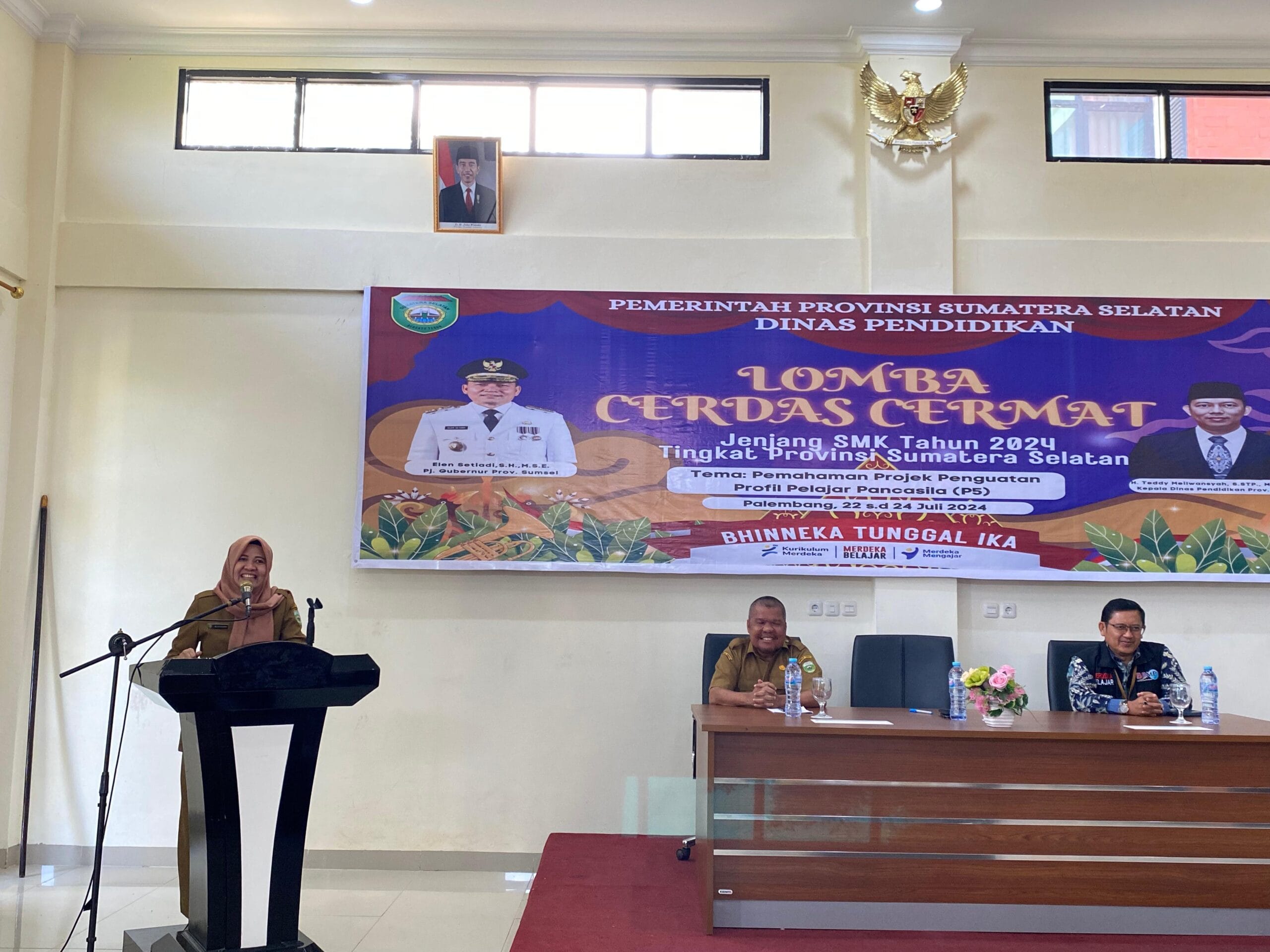 .UpdateKini- Kabid SMK Dinas Pendidikan Sumsel Mondyaboni membuka langsung lomba Cerdas Cermat (LCC) jenjang SMK tingkat Sumsel, dengan tema ” Pemahaman Projek Penguatan Profil Pelajar Pancasila (P5), Selasa (23/7/24).