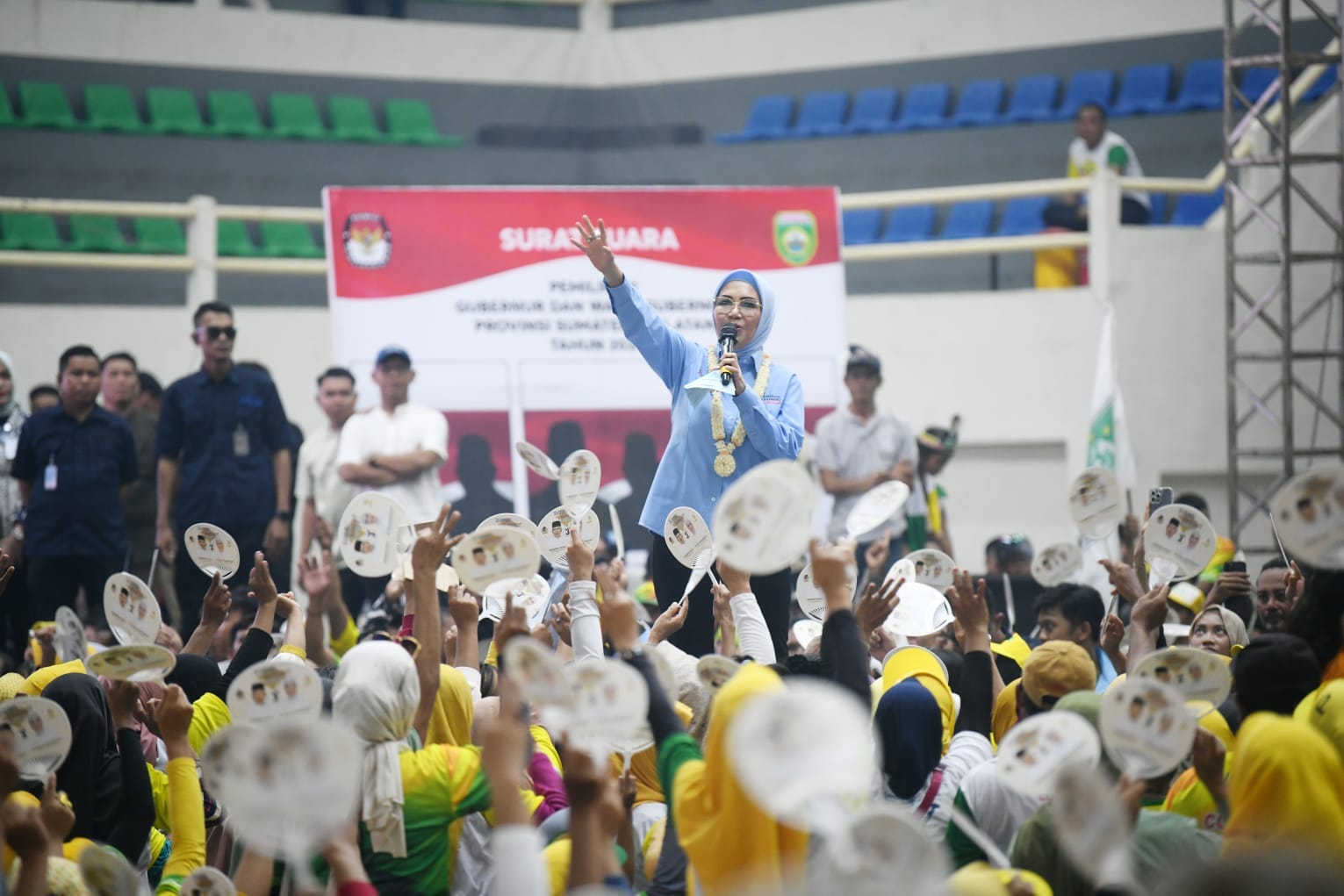 UPDATEKINI, LUBUKLINGGAU – Pasangan Calon (Paslon) Gubernur Sumsel nomor urut 03, H Mawardi Yahya dan Wagub Hj RA Anita Noeringhati (MATAHATI) menggelar kampanye akbar di Stadion Taman Olahraga Megang (TOM) Kota Lubuklinggau Sumsel, Jumat (25/10/2024).