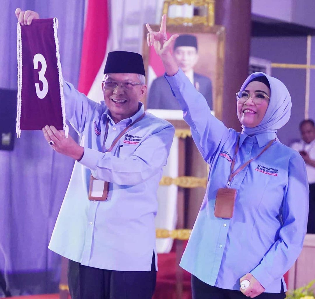 Usai pengambilan nomor urut, paslon Gubernur Mawardi Yahya mengaku bersyukur dapatkan nomor urut 3.