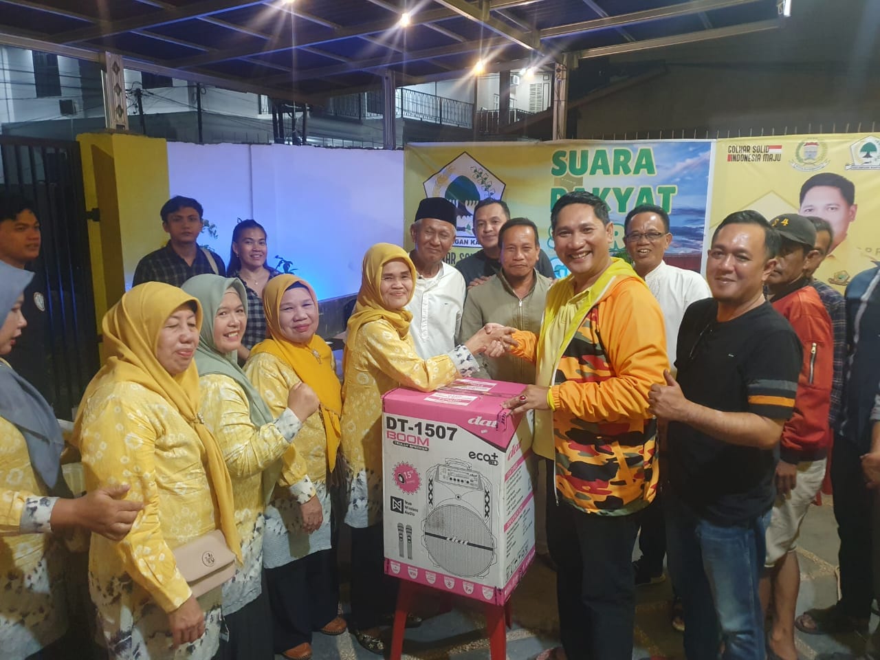 Updatekini, Palembang -Plt Ketua Kosgoro 1957 Kota Palembang, M. Sholatudin, S.T didampingi segenap pengurusnya telah menyerahkan bantuan berupa sound system kepada warga di Kelurahan Bagus Kuning, Kecamatan Plaju pada, Jum’at (18/07/25).