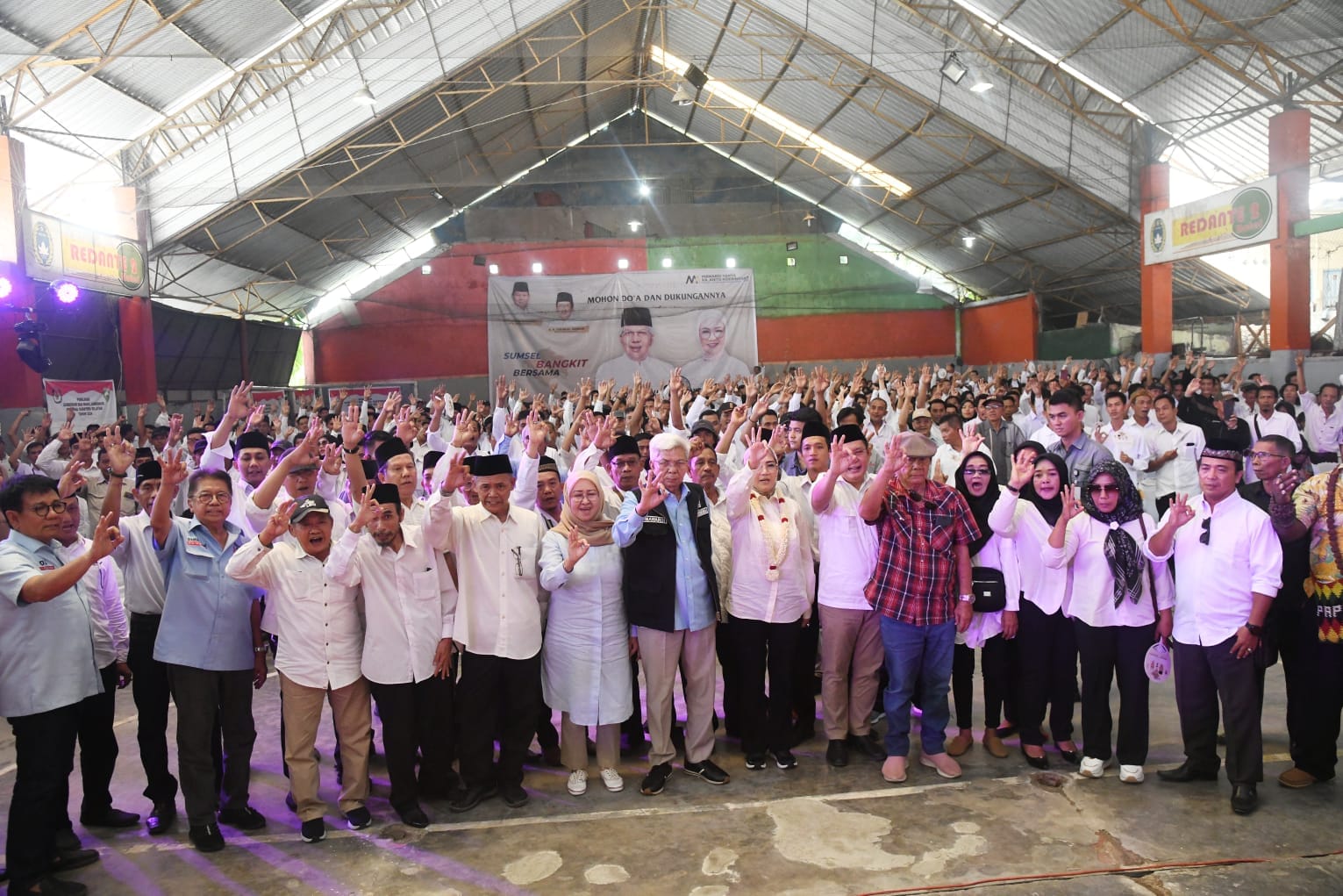Para pengurus beserta 1000 lebih anggota yang sempat hadir pun menyatakan sikap siap memenangkan pasangan MATAHATI dihadapan Cagub H. Mawardi – Cawagub Anita, di gedung serbaguna Hotel Redante 2, Kecamatan Baturaja, Kabupaten OKU.