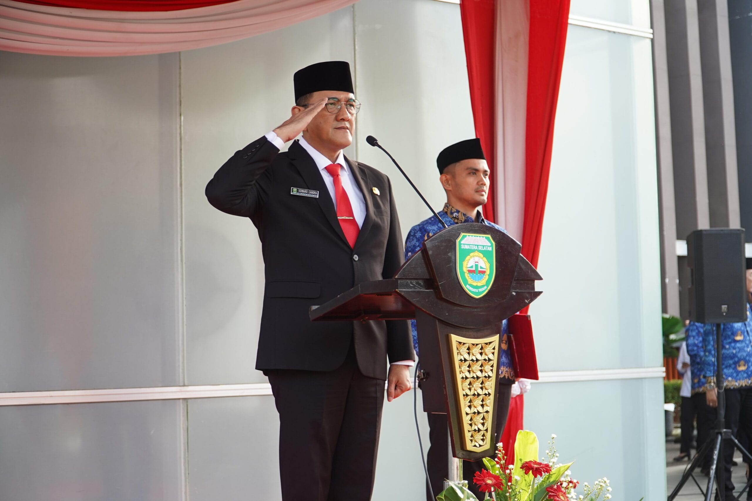 Updatekini,Palembang – Sekretaris Daerah (Sekda) Provinsi Sumatera Selatan (Sumsel) Drs H Edward Chandra MH, bertindak sebagai inspektur upacara (Irup) dalam peringatan Hari Lahir Pancasila yang digelar di halaman Kantor Gubernur Sumsel, Senin (2/6/2025) pagi.
