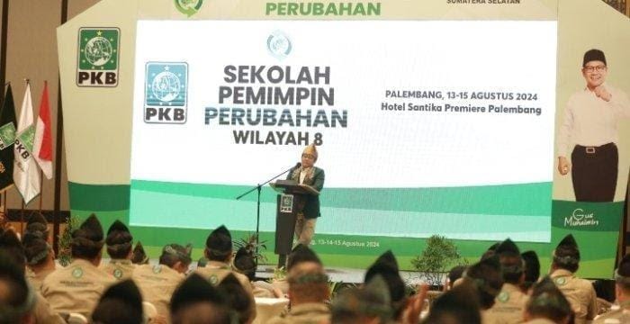 UpdateKini, Palembang -Partai Kebangkitan Bangsa menggelar kegiatan Sekolah Pemimpin Perubahan Wilayah 8 bertempat di Hotel Santika premier Selasa 13 Agustus 2024. Hadir Ketua Umum Partai Kebangkitan Bangsa (PKB) Muhaimin Iskandar, Ketua Dewan Pimpinan Wilayah (DPW) Partai Kebangkitan Bangsa (PKB) Sumsel Drs Ramlan Holdan dan ratusan Anggota DPRD, DPR terpilih dari PKB pada Pileg 2024.
