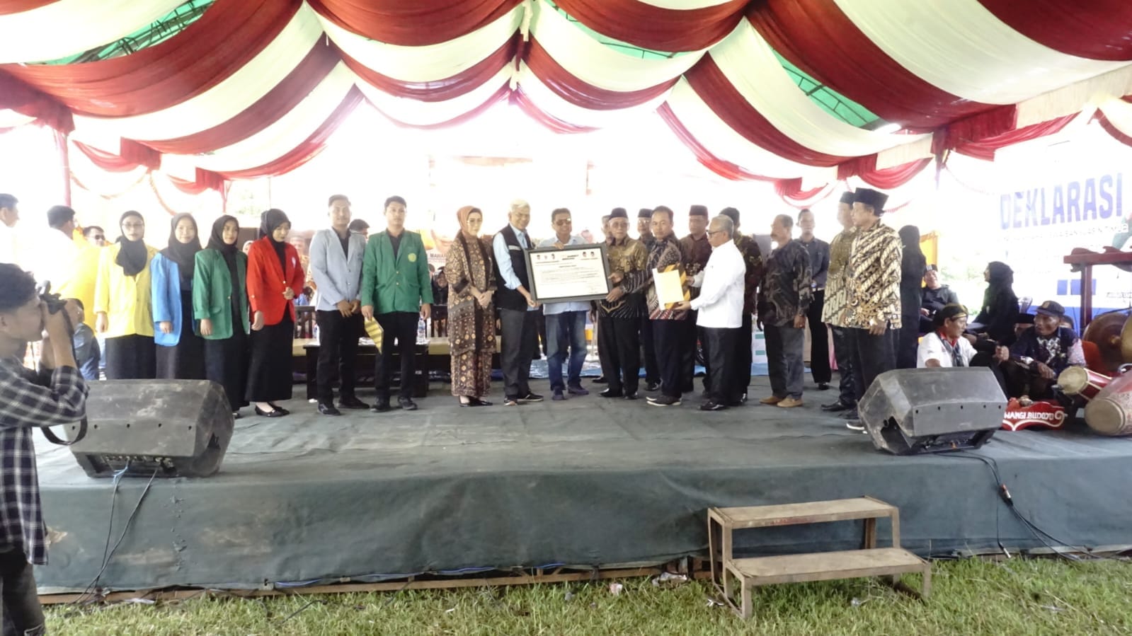 “Kalau Presiden dan Wakil Presidennya pak Prabowo Subianto dan mas Gibran Rakabuming Raka, maka kita dukungan Gubernur dan Wakil Gubernurnya nanti pak Mawardi Yahya dan Ibu R.A Anita Noeringhati, sedangkan untuk Pak De mu ini ? Bupatiiiii, “ teriak ribuan masyarakat yang hadir.
