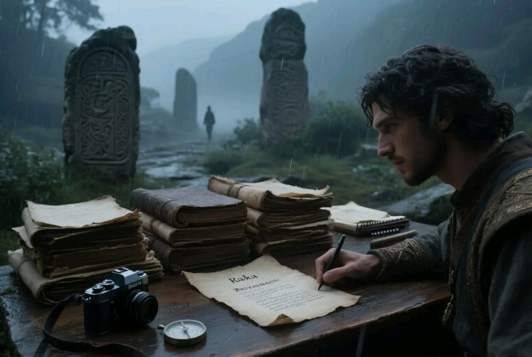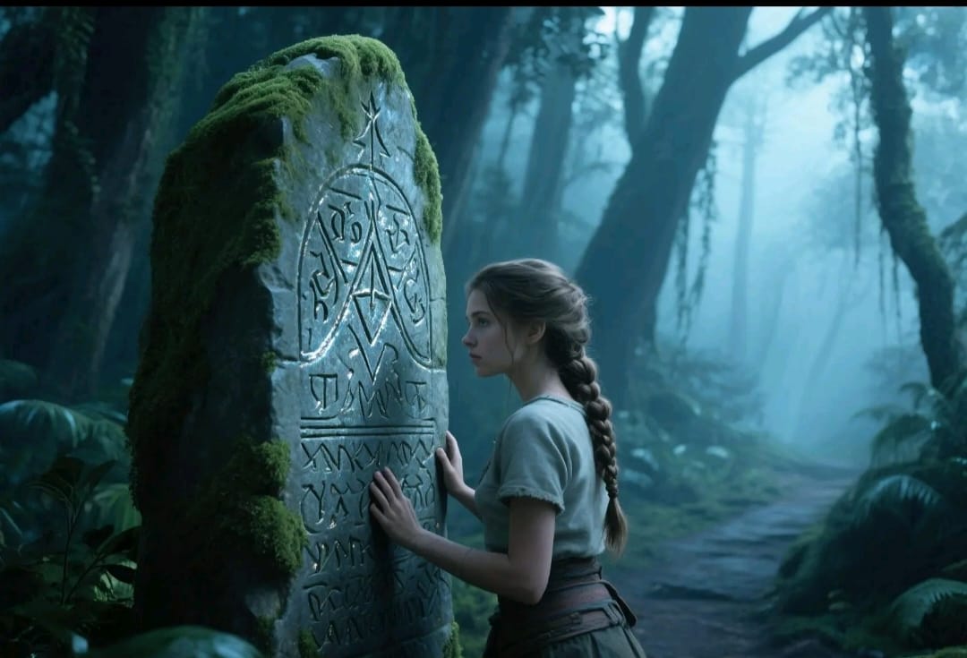 The morning sun barely pierced through thick clouds as Raka approached the ancient stele. Its moss-covered surface bore inscriptions that seemed to shimmer faintly.