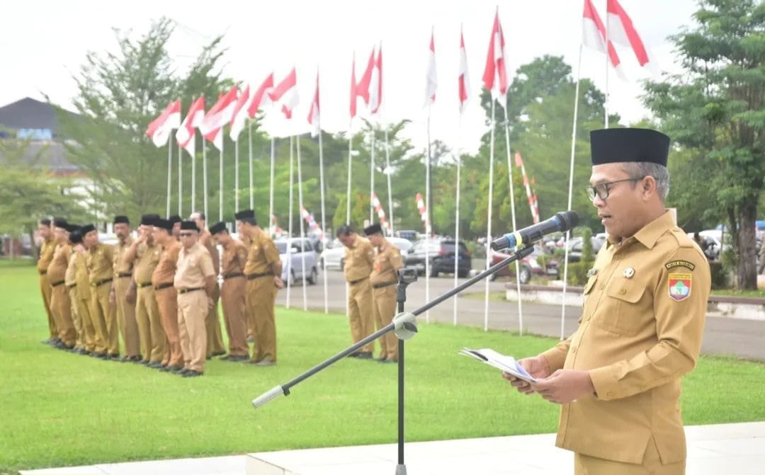 Musi Rawas, UpdateKini – Wakil Bupati (Wabup) Musi Rawas H. Suprayitno Pimpin Apel Pagi Bersama dan Menyerahkan Bingkisan bagi Pegawai Pegawai Negeri Sipil yang memasuki masa purna tugas TMT 1 Juli 2025 di Lingkungan Pemerintah Kabupaten Musi Rawas di Halaman Kantor Bupati Musi Rawas, Senin (07/07/2025).