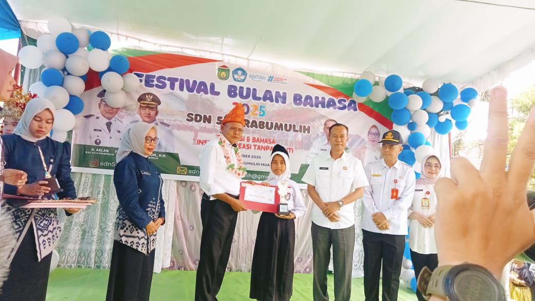 Prabumulih, UpdateKini – Suasana meriah tampak di SDN 54 Prabumulih, Muara Dua, pada Kamis (16/10/2025) saat sekolah tersebut menggelar Festival Bulan Bahasa. Acara ini mendapat sambutan hangat dari para siswa, guru, dan orang tua.